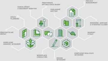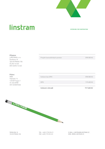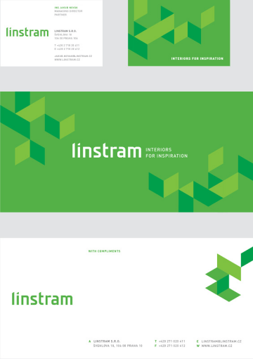 Společnost Linstram se zabývá tvorbou a realizací vybavení kancelářských a administrativních interiérů. Firemní identita stojí na nekonečném procesu změny prostoru. Vzájemném propojení a replikací stran krychle, které představují stěny, podlahu a strop, vzniká neomezené množství dispozic a forem.